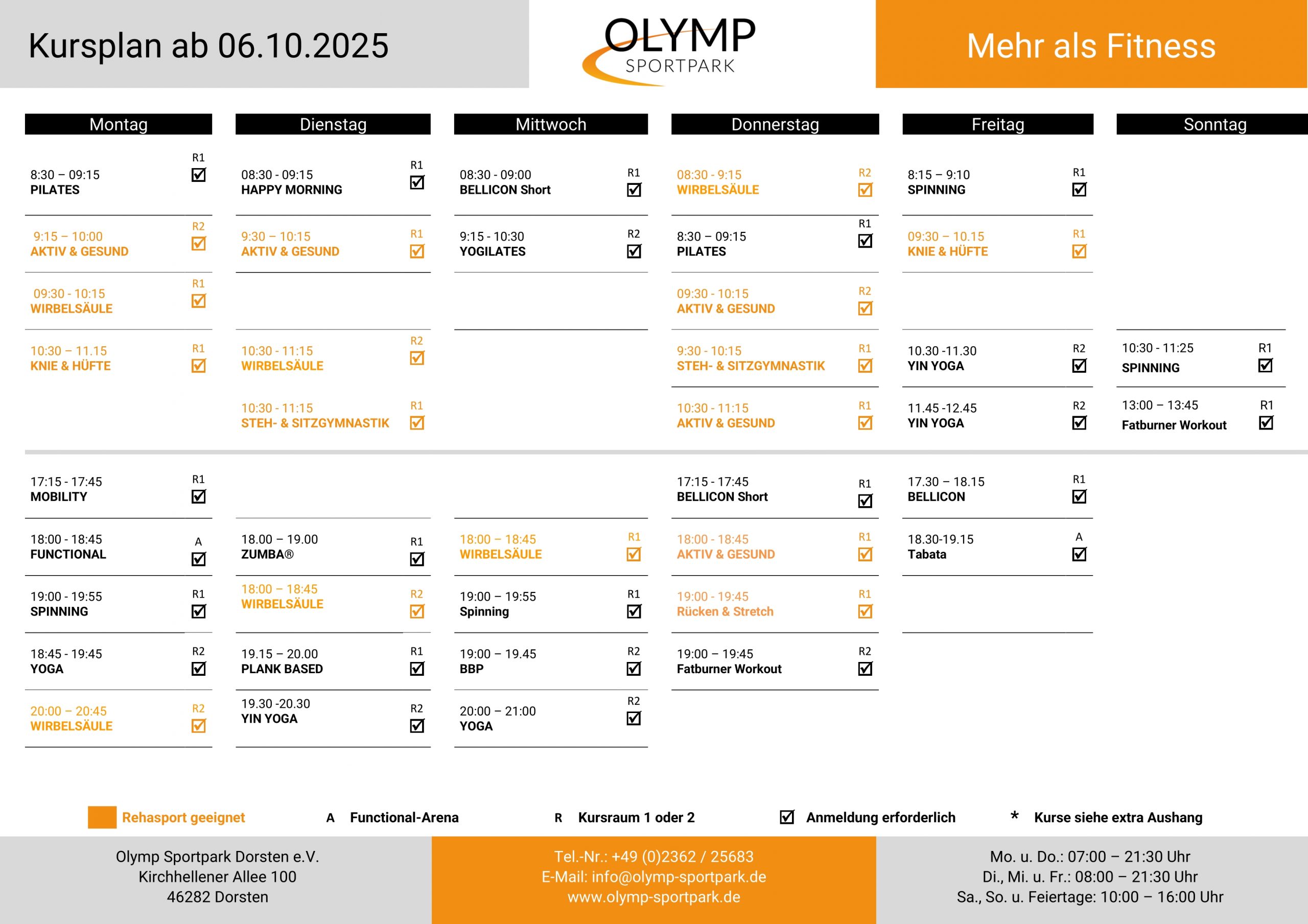 Wir bieten ein vielseitiges Kursprogramm, bei dem für jeden etwas dabei ist – egal ob Einsteiger oder Fortgeschrittener, Entspannung oder Auspowern – es ist sicher auch für Dich das Richtige dabei. Unsere top ausgebildeten Trainer machen aus jeder Trainingseinheit eine Spaß- und Erlebnisstunde mit viel Motivation und hohem Trainingseffekt. Schau dir gleich unseren Kursplan an!